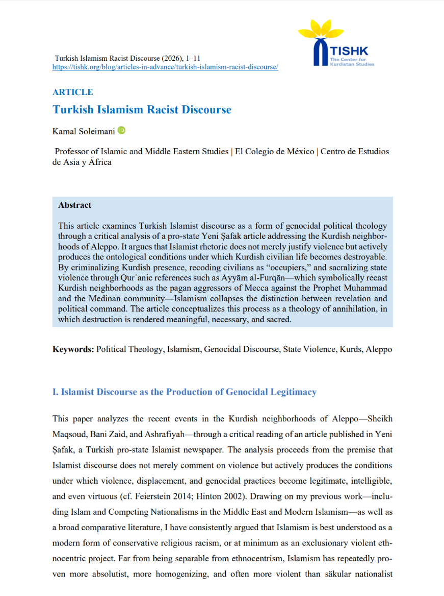 Soleimani, Kamal  2026. “Turkish Islamism Racist Discourse.” TISHK Center for Kurdistan Studies. Articles in Advance .