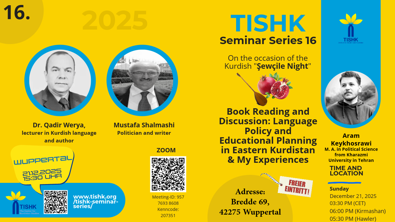 – Ort: TISHK Zoom (Details werden für jedes Seminar bereitgestellt).
