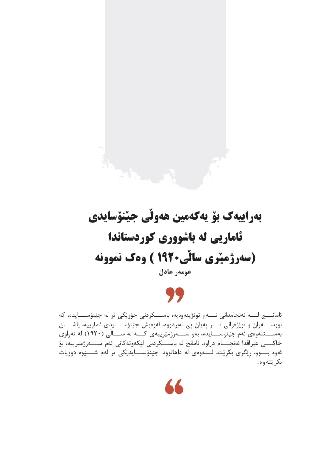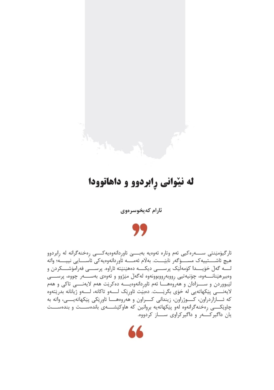 ئەم کتێبە کە ناونیشانەکەی لەسەرەوە ئاماژەی پێ دراوە، بەشێکە لە تێزی دکتۆراکەم کە لە ژێر سەرپەرشتیاریی پرۆفیسۆر “کارمن ئەلێن گاراباتۆ” لە زانکۆی “پۆل ڤەلەری” لە شاری “مۆنپولیە” لە فەرەنسا ئامادە کرا و لە کۆتا مانگی ساڵی ٢٠٢٣ بەرگریی لێ کرا.