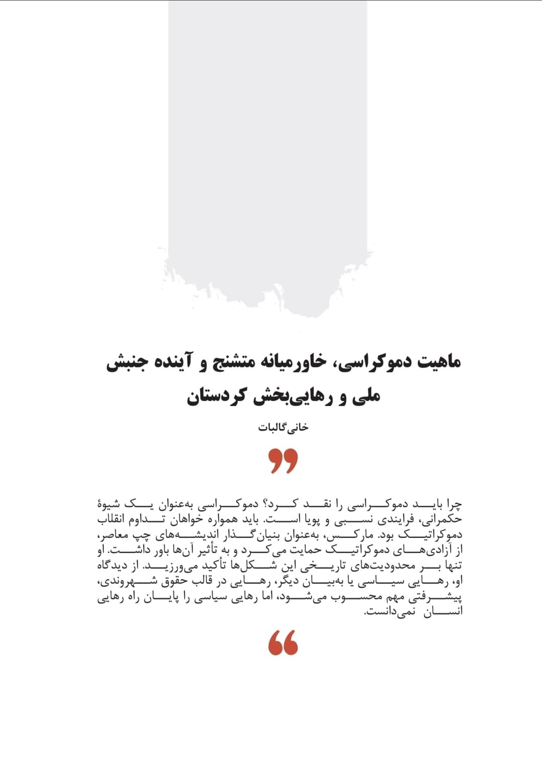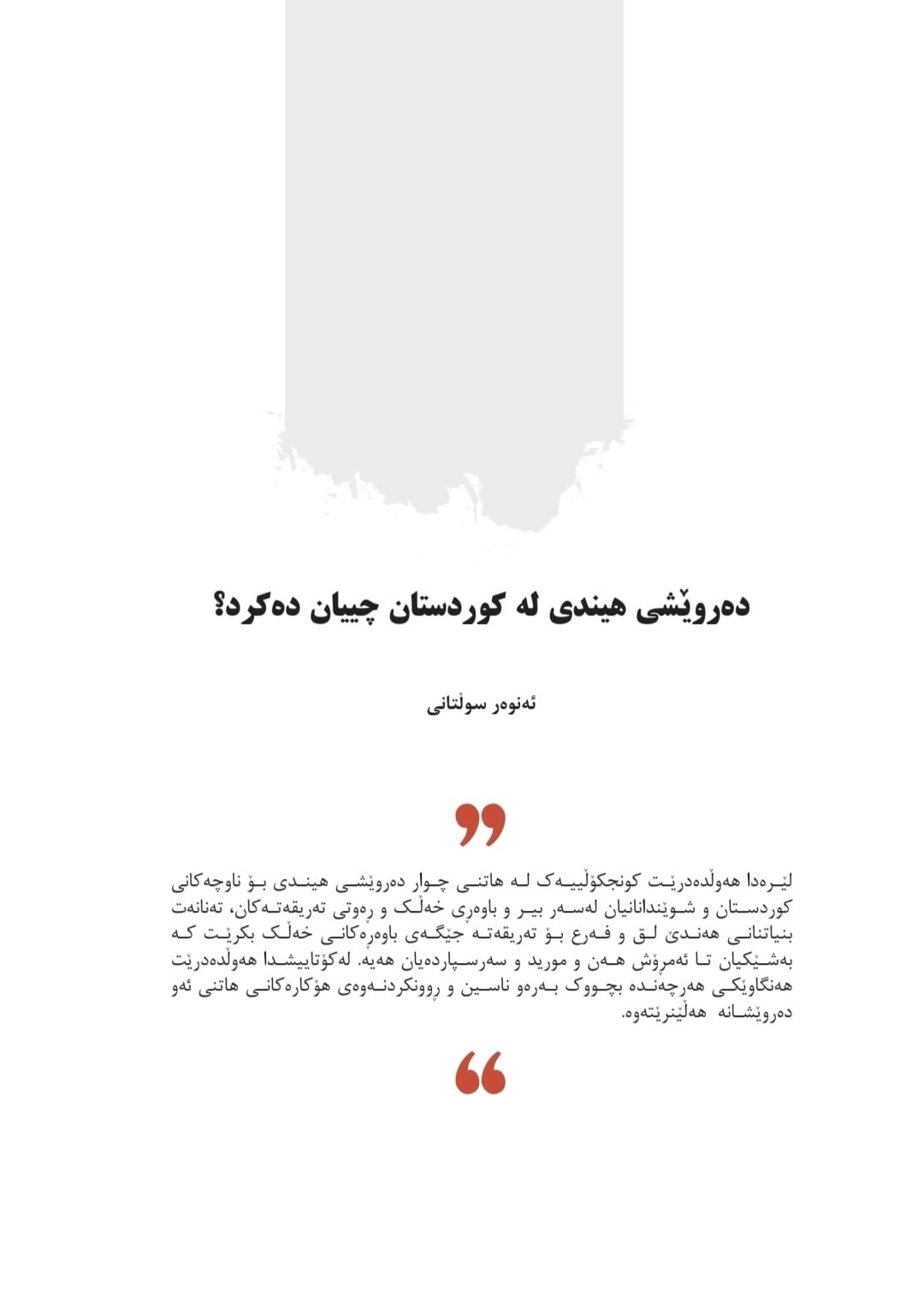 2) باس لە چەمکی “کوردستانی گەورە” و داینامیکی شوناس و دابەشبوونە ناوخۆییەکان و فۆڕمەکانی بەرخۆدانی سیاسی دەکات.