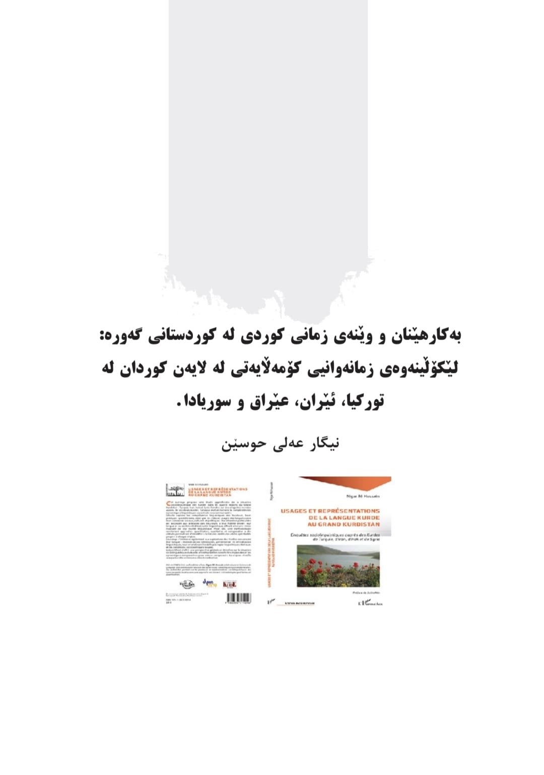 زانکۆی “پۆل ڤالێری” لە مۆنتپەلیە و هەروەها ئەنستیتوی کورد لە پاریس، تێچووی داراییی پرۆژەی بڵاوکرنەوەیان گرتە ئەستۆ. ئەوەبوو، لە مانگی ئازاری ٢٠٢٥ لە پاریس لایەن چاپەمەنی (هارمەتان – لە زنجیرە بڵاوکراوەکانی سۆسیۆلانگویستیک) کتێبەکەم بە زمانی فەرەنسی بڵاوکرایەوە.